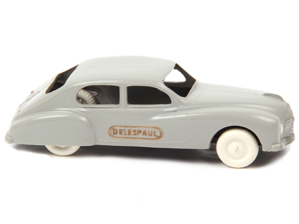 la mention 'DELESPAUL' est gravée en lettres dorées sur le côté droit de la carrosserie (légèrement déformée) - axes de roues oxydés - une petite partie de plancher manquante