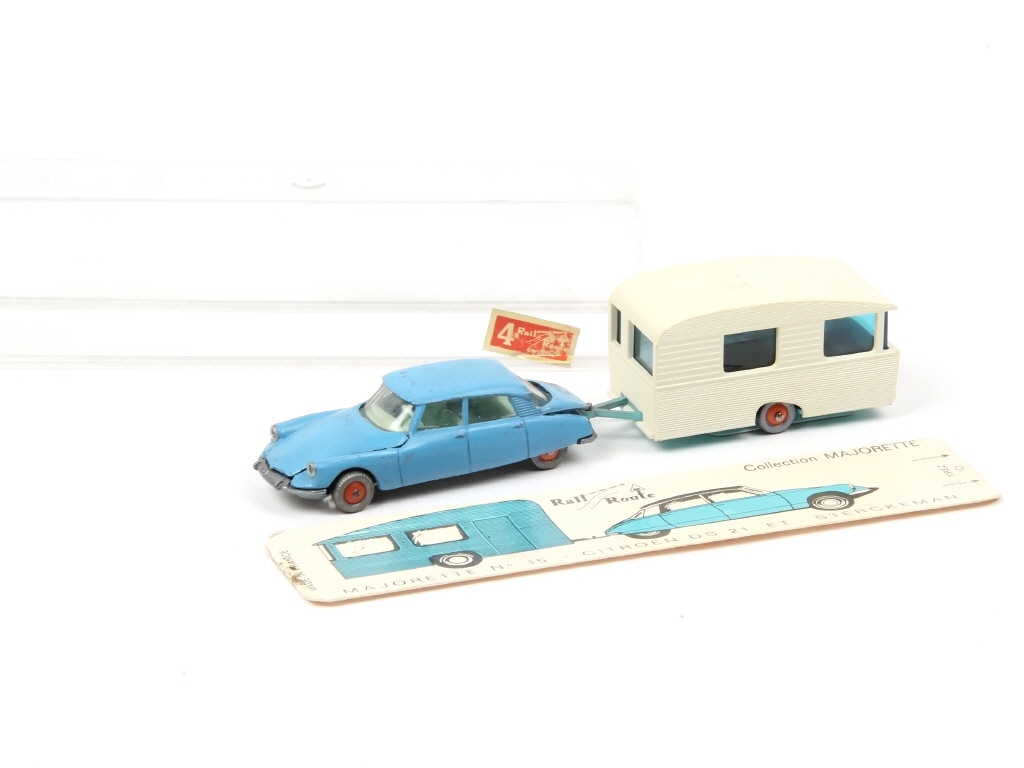 MAJORETTE (FRANCE) 15 CITROEN DS 21 avec caravane STERCKEMAN LOVELY bleu ciel & blanc