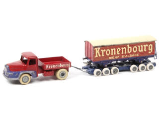 JRD (FRANCE) 123 UNIC avec remorque rail-route 'KRONENBOURG' rouge foncé, bleu & crème