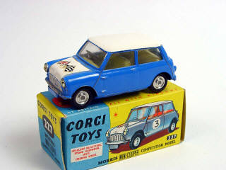 CORGI TOYS (GB) 227 MINI COOPER Rallye bleu & blanc, intérieur jaune