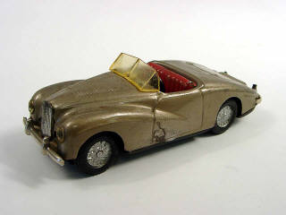 il s'agit d'un des 3 modèles de la série STARTEX du début des années 50 réalisé en tôle & équipé d'un système à ressort actionné en tirant une ficelle par l'intermédiaire du volant - mécanisme à ressort (fonctionne)- très légères traces d'oxydation - pare-brise jauni