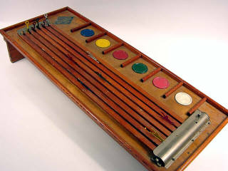 dimensions 76 x 30,5 cm - jeu de chevaux avec mécanisme à ressort (non testé) - en action le mécanisme permet de faire avancer les chevaux & 6 cases aux couleurs des montures permettent de faire des paris - petits manques
