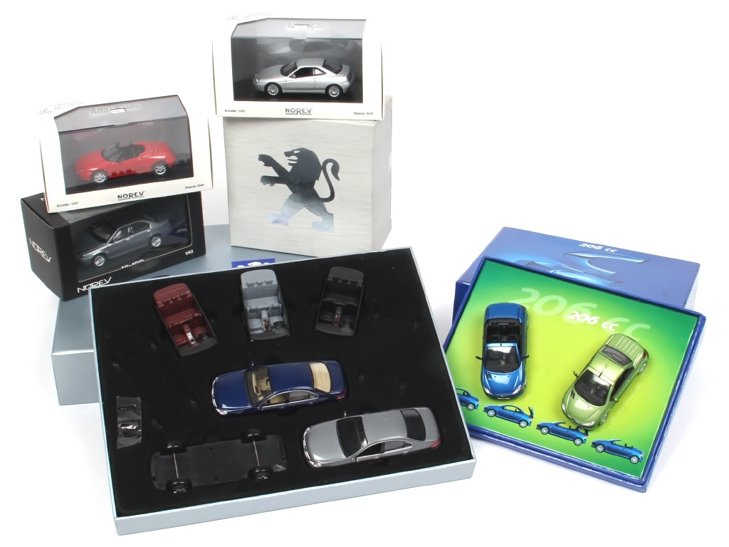 miniatures reproduisant les modèles : PEUGEOT & ALFA ROMEO (3 exemplaires) - 2 suremballages en état 'c'