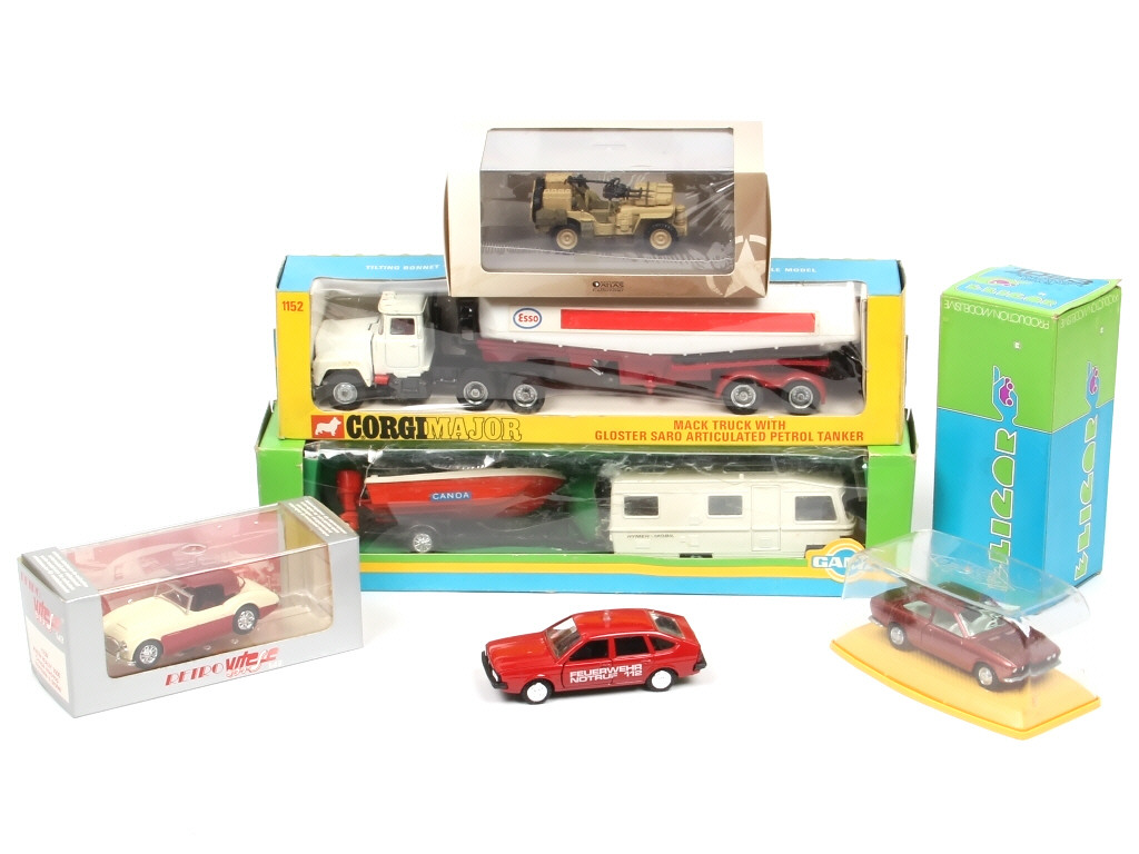 miniatures reproduisant notamment les modèles : JEEP, AUSTIN HEALEY, CITROËN, SEAT & VOLKSWAGEN (tableau de bord désolidarisé) - on y retrouve les marques : CORGI TOYS, VITESSE, ELIGOR, PILEN (petites parties fondues sur le socle), EDITIONS ATLAS, CONRAD & GAMA - 2 exemplaires en état 'C' & un autre sans boîte