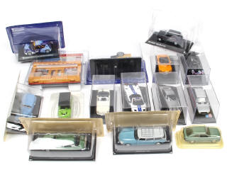 modèles vendus en kiosque - miniatures reproduisant notamment les modèles : PEUGEOT, CITROEN (un exemplaire 'MICHELIN' & un autre avec une portière désolidarisée), LAMBORGHINI & VOLKSWAGEN - on y retrouve notamment les marques : NOREV & EDITIONS ATLAS - les boites sont en états de 'a' à 'c'