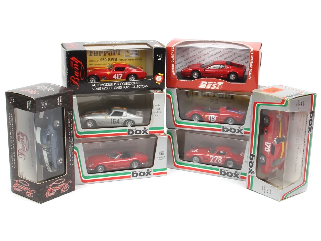 comprend notamment les modèles : 275 GTB4, 250 GT, SWB & 512 BB - on y retrouve les marques : MODEL BOX, BEST MODEL & BANG - quelques accrocs (légers) sur certains suremballages dont certains en état 'c'