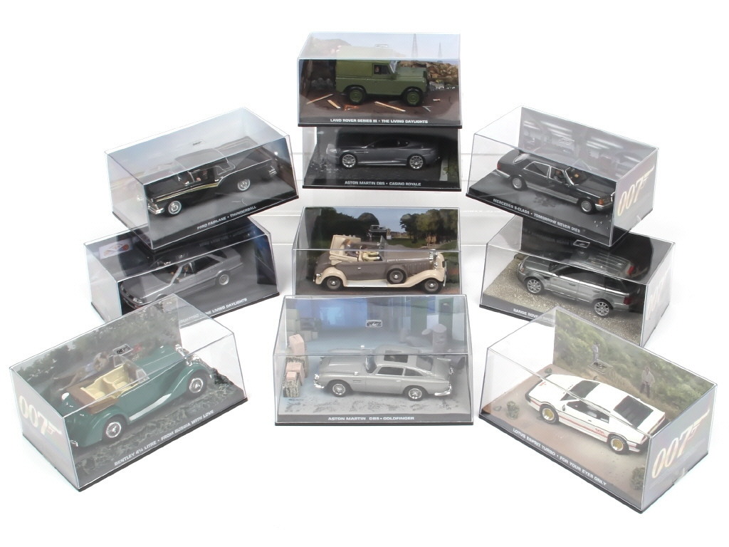 collection 'JAMES BOND' - miniatures reproduisant notamment les modèles : ASTON MARTIN, MERCEDES, LAND ROVER & HISPANO SUIZA
