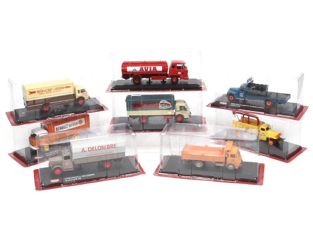 miniatures reproduisant les modèles : SAVIEM, RENAULT, BERLIET, BERNARD, PANHARD, CITROËN & GMC - quelques boîtes en état 'c'