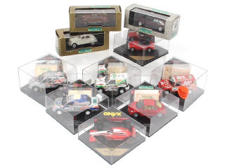 7 exemplaires en série limitée - miniatures reproduisant les modèles : TOYOTA, VOLKSWAGEN, MITSUBISHI, CITROËN, HONDA & RENAULT - on y retrouve les marques : VITESSE & ONYX - accrocs sur les suremballages
