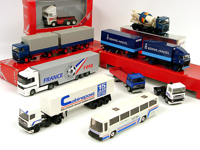 comprend : 5 modèles DAF de marque HERPA, un modèle MERCEDES de marque WIKING & 3 modèles DAF (dont un autocar) de marque EFSI - 5 modèles avec boîte
