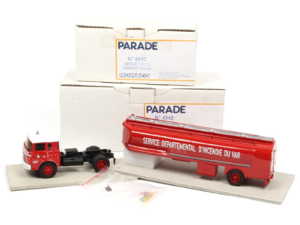 PARADE (FRANCE) 4342 BERLIET TR12 Semi-remorque citerne de pompiers 'SERVICE DEPARTEMENTAL D'INCENDIE DU VAR' rouge & blanc