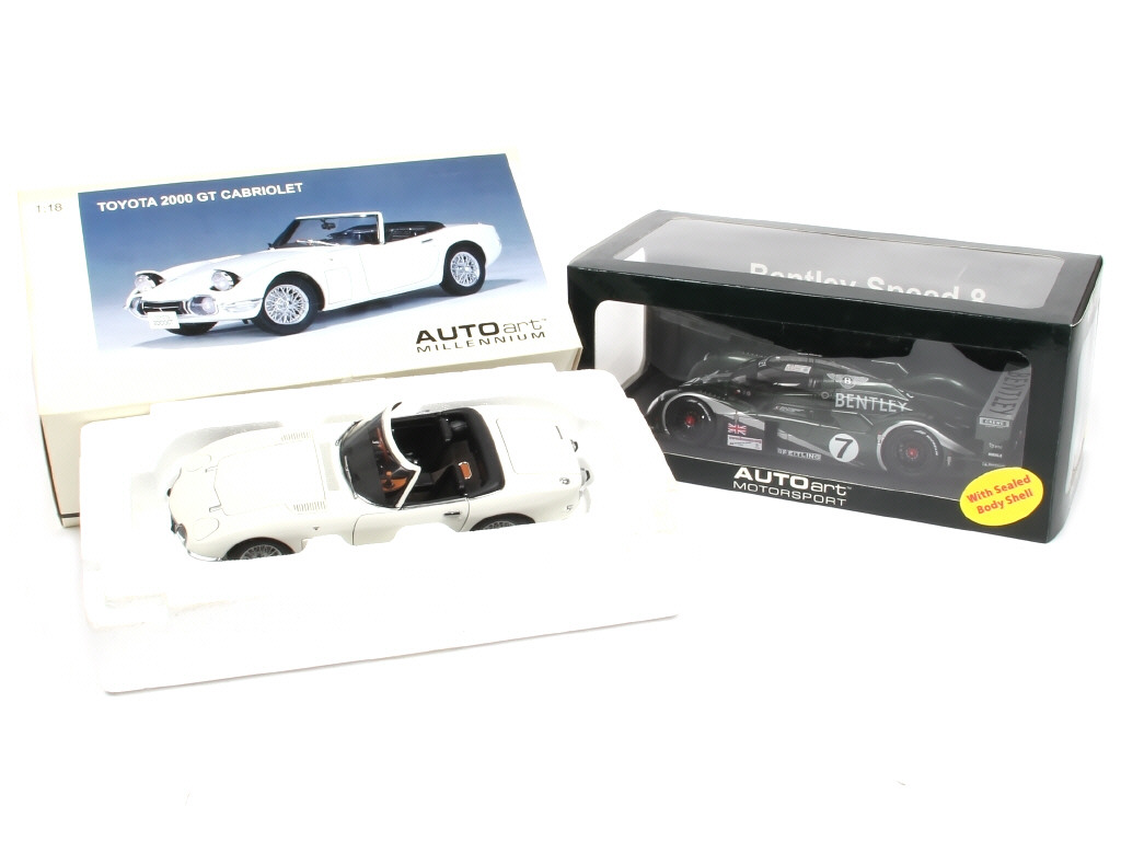 échelle 1/18ème - comprend les modèles : TOYOTA 2000 GT (boîte plus ou moins décolorée) & BENTLEY SPEED 8