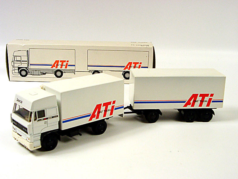 LION-CAR (PAYS-BAS) 76 DAF 3600 SPACE CAB fourgon avec remorque 'ATI' blanc