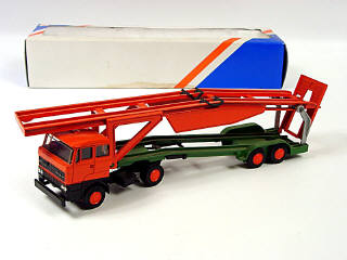 LION-CAR (PAYS-BAS) 60 DAF 2800 Camion porte-voitures rouge orangé & vert
