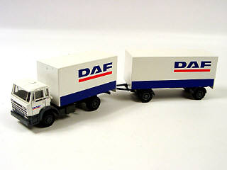 LION-CAR (PAYS-BAS) 75 DAF 1900 Fourgon avec remorque 'DAF' blanc & bleu