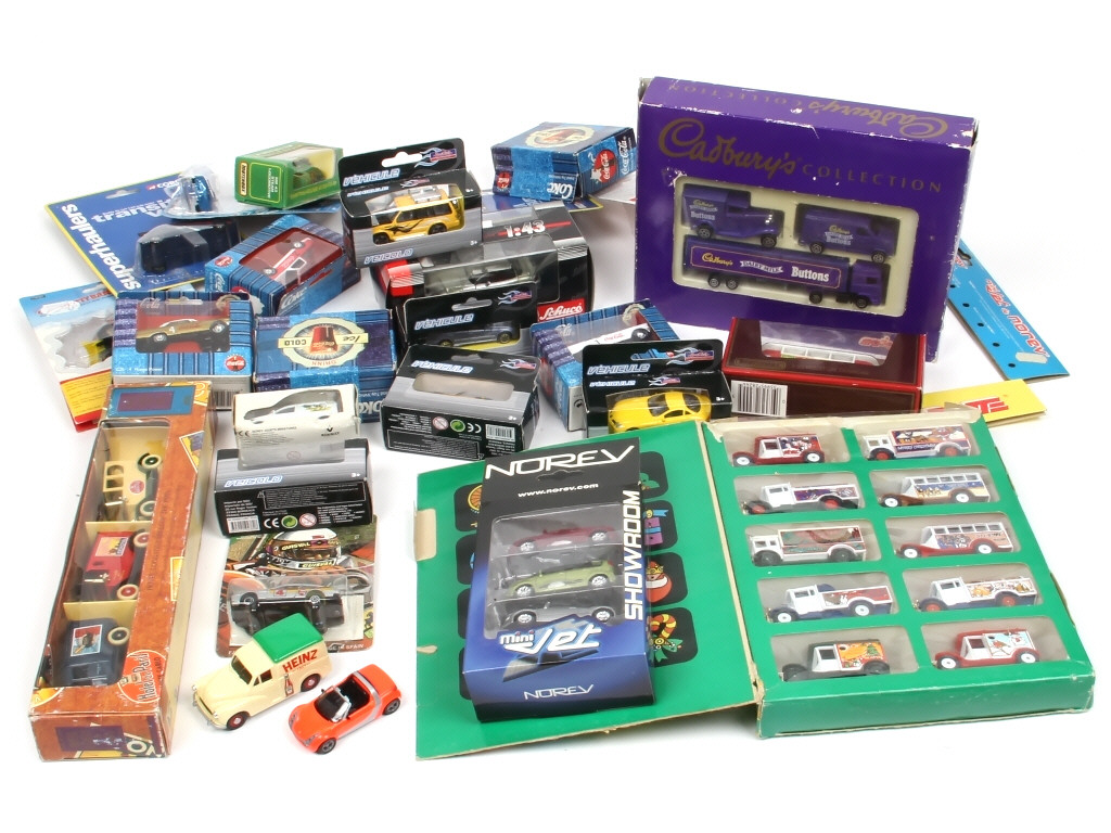 on y retrouve notamment les marques : NOREV, CORGI TOYS, LLEDO, MAJORETTE & MATCHBOX - les boites sont en états de 'b' à 'c' (2 modèles sans)