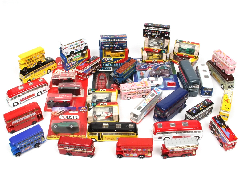 on y retrouve notamment les marques : CORGI TOYS, BANDAÏ & POLISTIL - les boites sont en états de 'b' à 'c'