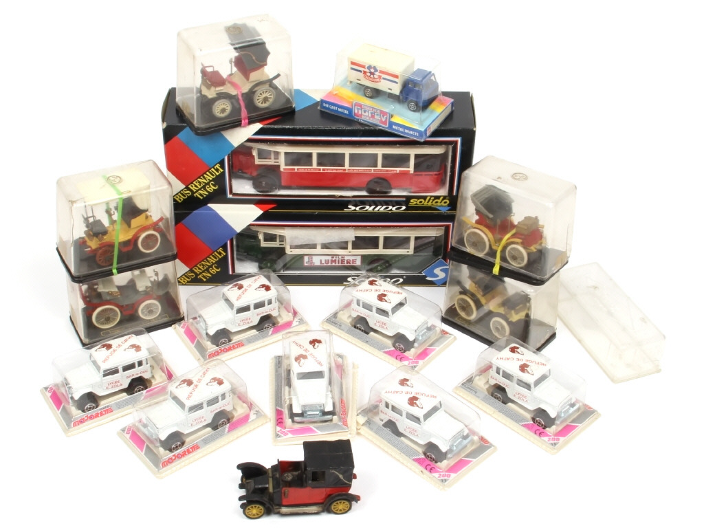 on y retrouve notamment les marques : SOLIDO, MAJORETTE, J.M.K, NOREV & SAFIR - un modèle sans boite en état 'C' - les boites sont en états 'b' & 'c'