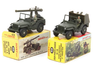 DINKY TOYS (FRANCE) 829 JEEP WILLYS Porte-canon kaki