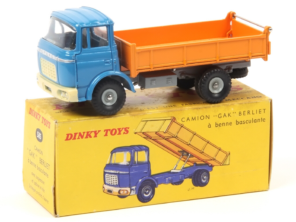 DINKY TOYS (FRANCE) 585 BERLIET GAK Benne basculante (version avec benne à stries larges) bleu & orange