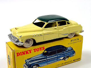 DINKY TOYS (FRANCE) 24V BUICK ROADMASTER (version avec intérieur de toit quadrillé & jantes chromées) jaune paille, toit vert