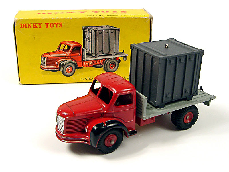 DINKY TOYS (FRANCE) 34B BERLIET Plateau avec container (version avec goupille) rouge, plateau gris clair