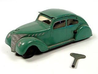 longueur 20 cm - en celluloïd - moteur à clef (fonctionne) - avec clef - parties légèrement fendues - petits manques sur le toit amovible