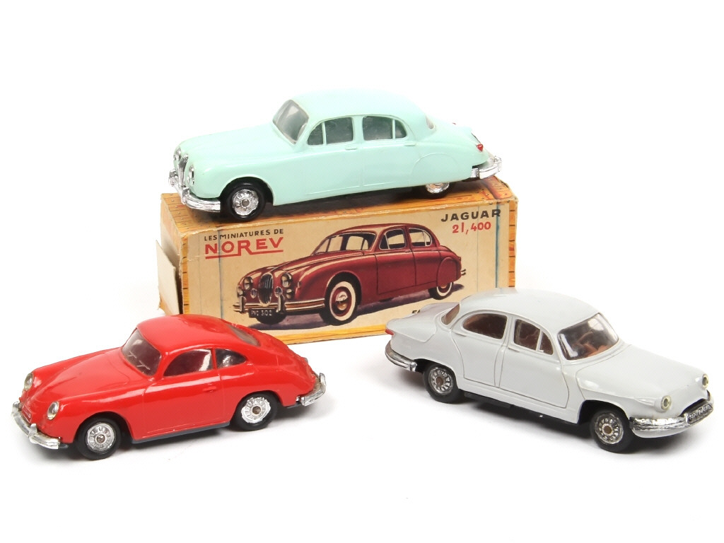 comprend les modèles : PORSCHE, PANHARD & JAGUAR (en boite état 'd') - carrosseries plus ou moins déformées & jantes plus ou moins fondues - quelques traces d'oxydation sur les axes de roues