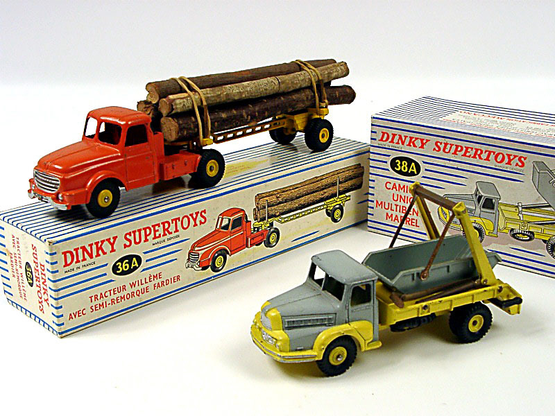 DINKY TOYS (FRANCE) 36A WILLEME Fardier (version avec jantes convexes & remorque ajourée) orange & jaune