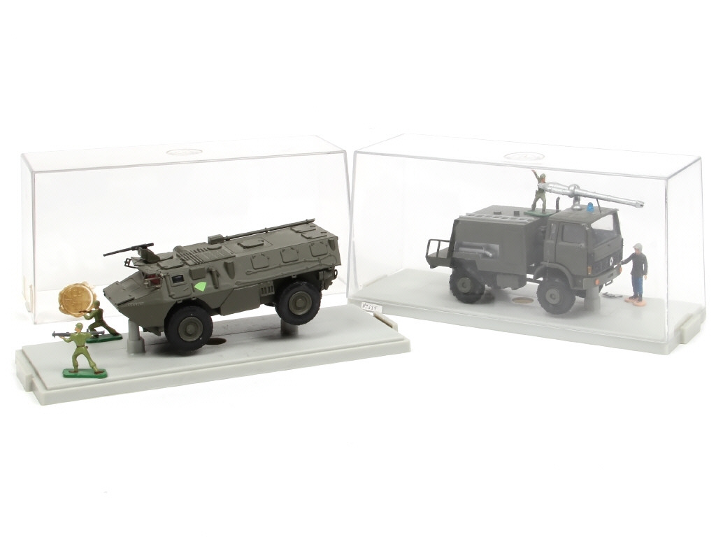comprend : VAB 4X4 & lance-mousse - petits manques & parties cassées ou éléments recollés (avec traces de colle) - personnages collés à différents endroits - sans suremballage