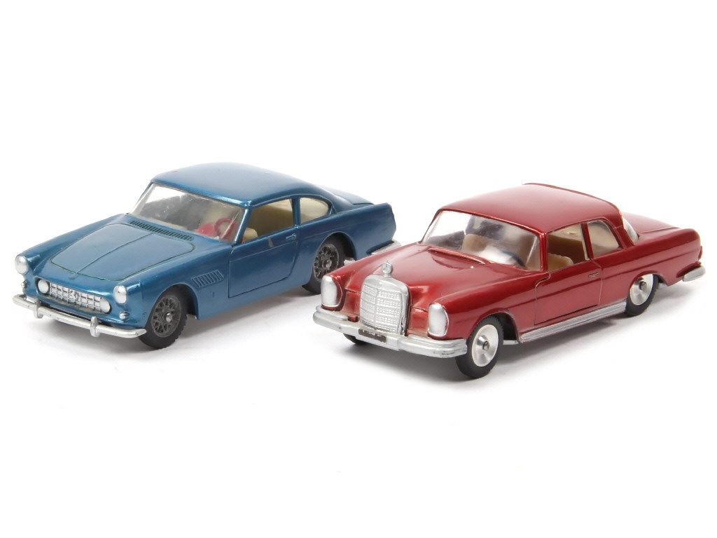 comprend : MERCEDES 220 SE (suspension arrière affaissée) & FERRARI 250 GT (un éclat important sur la portière conducteur, jantes ternies) - carrosseries légèrement encrassées