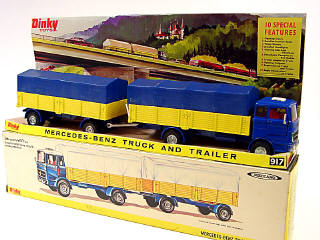 DINKY TOYS (GB) 917 MERCEDES Bâché avec remorque bâchée bleu foncé & jaune, bâches bleues