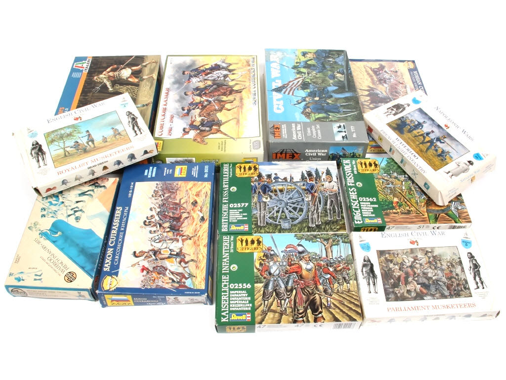 différentes échelles - certains exemplaires incomplets & certains autres jamais ouverts - figurines peintes ou à peindre - on y retrouve notamment les marques : AIRFIX, REVELL, ZVEZDA, ITALERI & IMEX