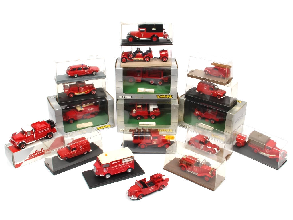 miniatures reproduisant notamment les modèles : CITROEN, ACMAR, HOTCHKISS, RENAULT, JEEP & HALF TRACK - on y retrouve notamment les marques : BRUMM, SOLIDO & VEREM - possibilités de manques, parties cassées & petites transformations - les boites sont en état de 'b' & 'c' (2 modèles sans)