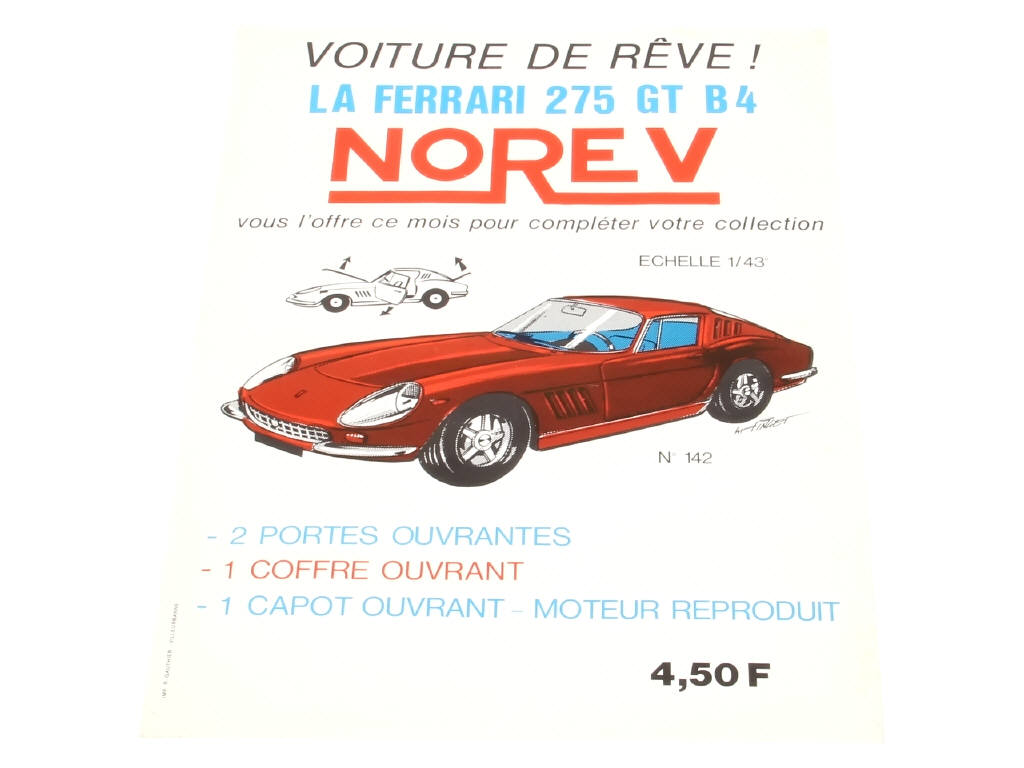 NOREV (FRANCE) 142 Affichette 'LA FERRARI 275 GTB4'