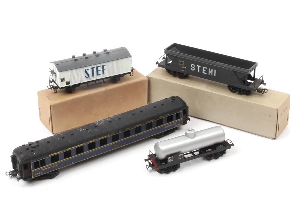 S.M.C.F. 'HO' (FRANCE) Ensemble de 3 wagons de marchandise & une voiture de voyageurs