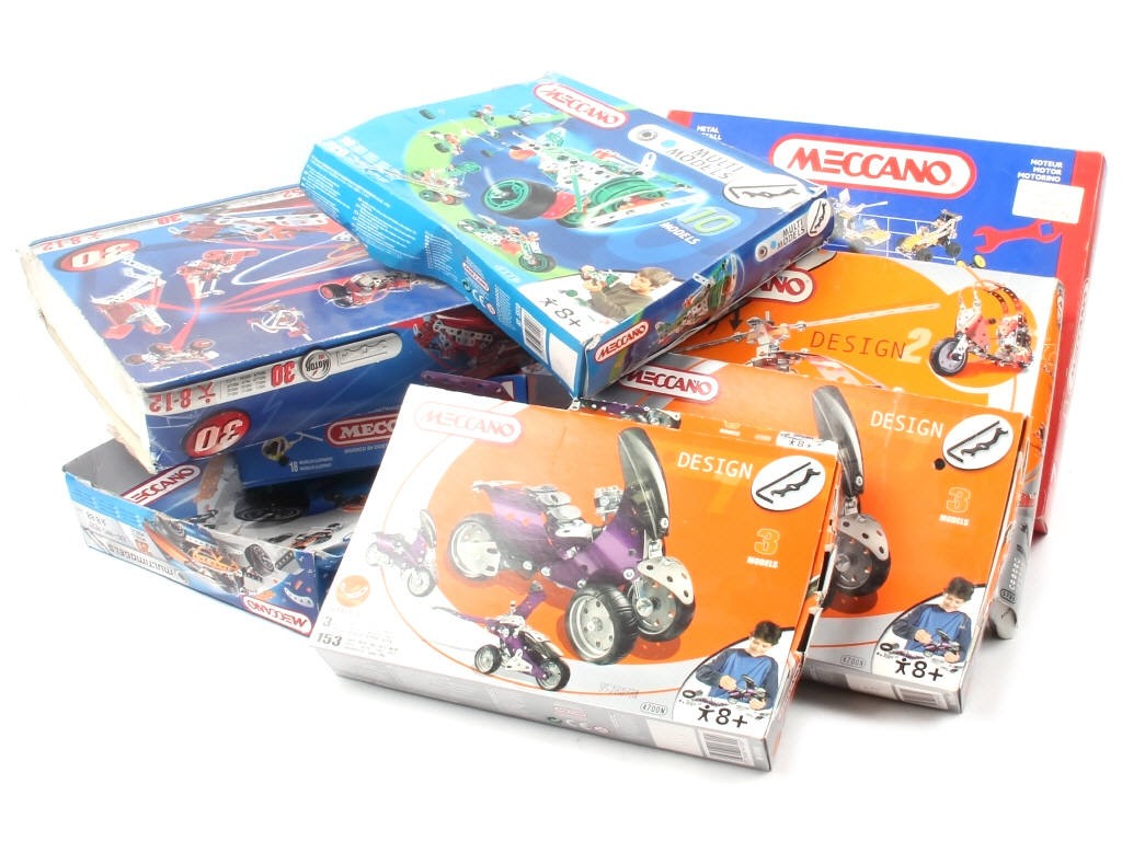 MECCANO (FRANCE) Ensemble de 8 coffrets de pièces à monter