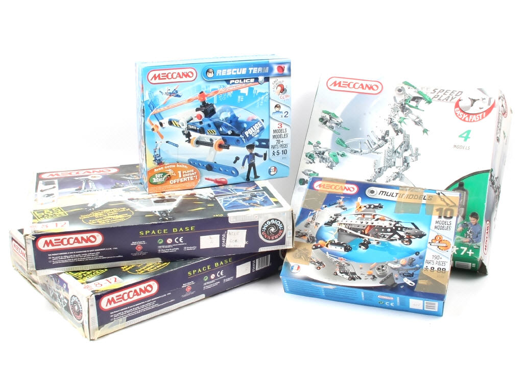 MECCANO (FRANCE) Ensemble de 5 coffrets de pièces à monter