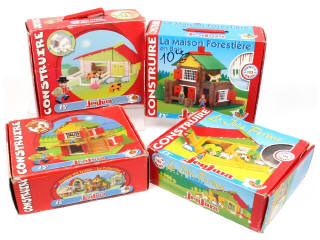 JEUJURA (FRANCE) Ensemble de 4 coffrets de constructions en bois & plastique
