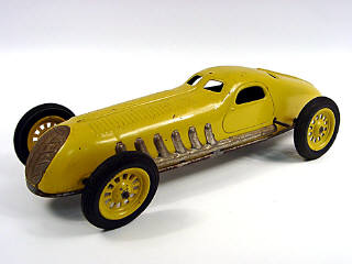 longueur 36 cm - moteur à clef (à revoir) - avec direction - légère oxydation des parties nickelées - 3 soudures non d'origine