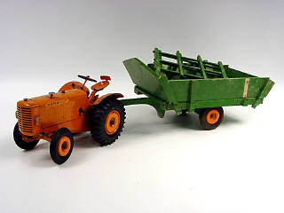 C.I.J. (FRANCE) 8/51 RENAULT R 3040 Tracteur agricole avec remorque fourragère en bois orange & vert