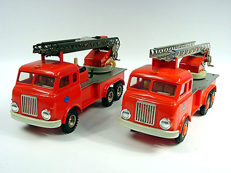 longueur 33 cm - moteur à friction (fonctionne) - avec citerne à eau fonctionnelle & sachet d'accessoires - manque dévidoir, tuyau reliant la citerne à la prise extérieure & gyrophare - 2 petites fêlures sur le pare-brise