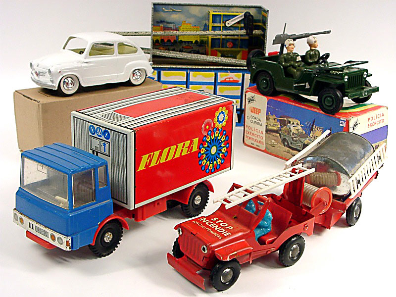 longueur 41 cm - moteur à clef (fonctionne) - en action, un bras articulé permet de remonter un véhicule puis de le faire redescendre à l'extrémité de la rampe afin de répéter le même mouvement - manque le véhicule