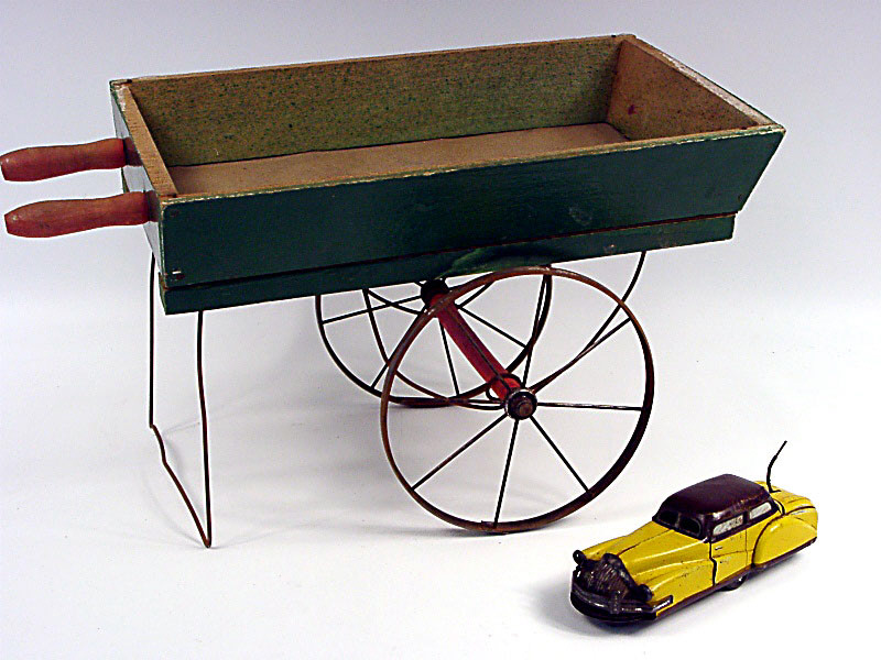 dimensions : 40 x 21 x 21 cm - en bois peint & métal - parties métalliques oxydées - avec béquille & poignées