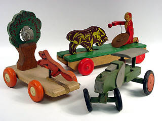 longueur 32 cm - en bois peint - en action, le taureau avance & recule tandis que le matador bouge le bras pour essayer de frapper l'animal