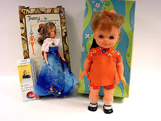 hauteur 31,5 cm - système permettant d'allonger sa chevelure (non testé) - avec socle de présentation - robe en tissu bleu & blanc & cheveux blonds (avec filet de protection) - avec dépliant sur les différentes tenues & accessoires de la poupée
