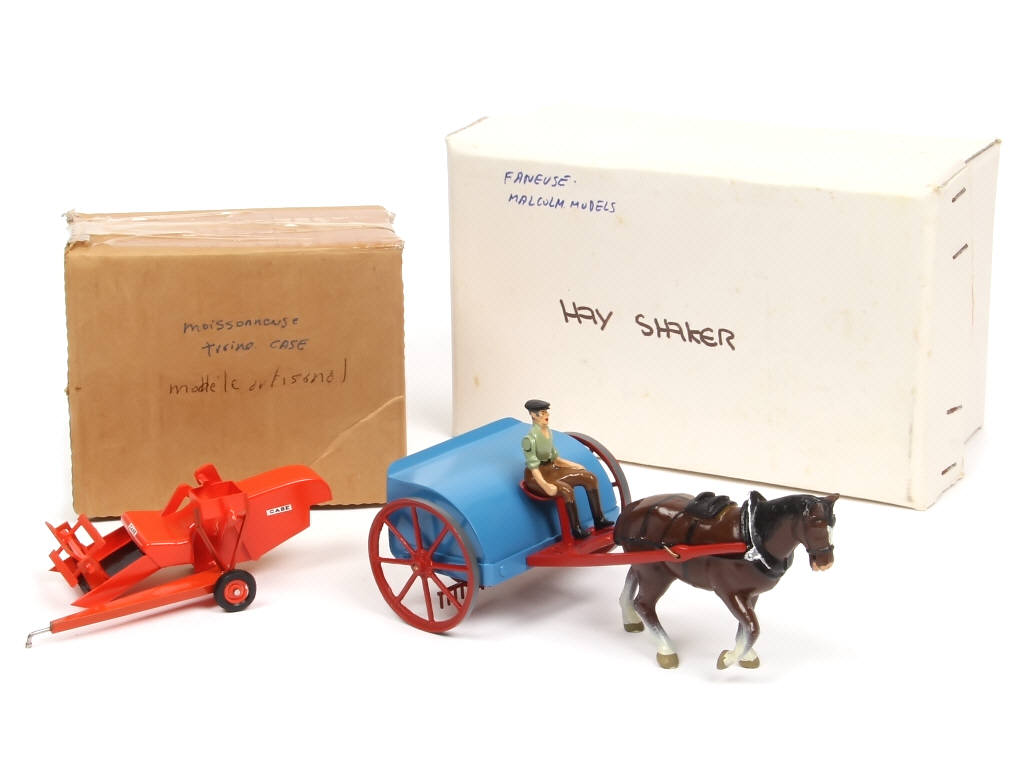 comprend : semoir à engrais avec cheval & personnage & moissonneuse batteuse CASE (modèle artisanal) - on y retrouve la marque MALCOM MODELS