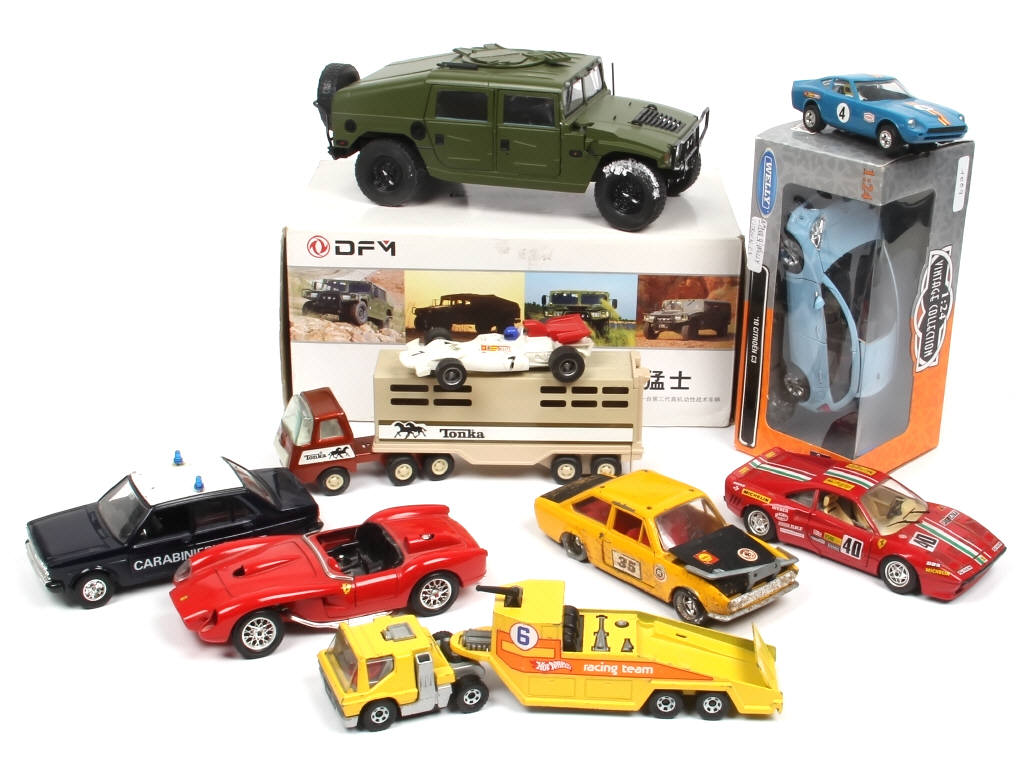 différentes échelles - avec manques & parties cassées sur certains exemplaires - on y retrouve les marques : NACORAL, BBURAGO, TONKA, PAUDIMODEL, WELLY & SCALEXTRIX (non testé)