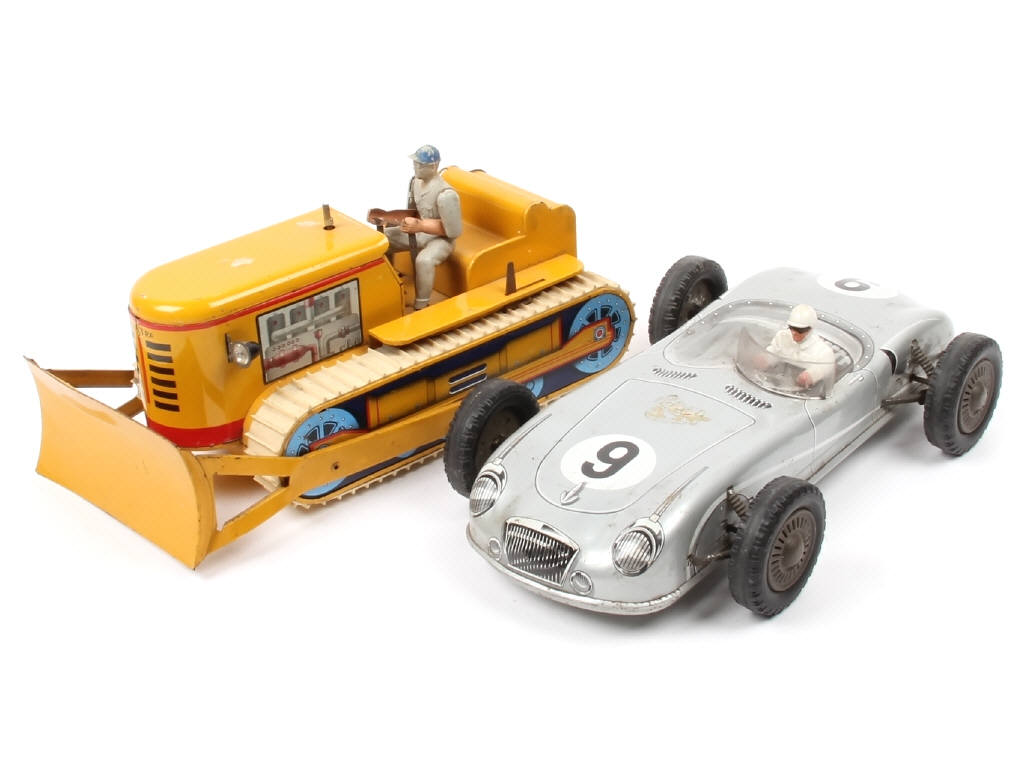 on y retrouve les marques : JOUSTRA & FRANCE JOUETS - véhicules motorisés (moteurs à revoir) - avec manques, parties cassées & oxydées