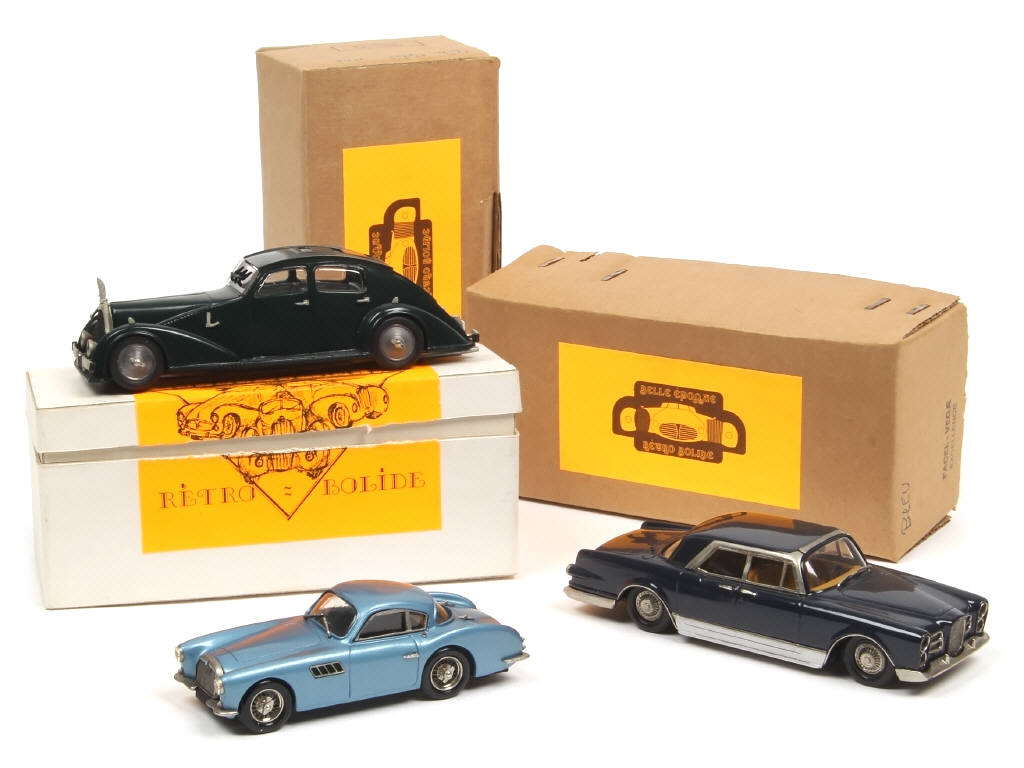 comprend : FACEL VEGA EXELLENCE (série PRESTIGE - série limitée n° 154) & VOISIN AERODINE 1935 - on y joint une TALBOT 2,5 L coupé 1955 de la marque EPOKIT (boite non conforme) - annotations sur les boites (dont une avec traces d'humidité)
